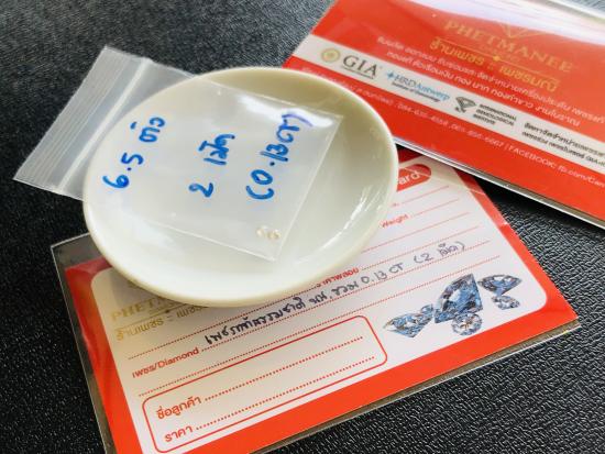 เพชรแท้ธรรมชาติ เหลี่ยมเบลเยี่ยมคัต แกะจากตัวเรือนสินหลุดจำนำ จำนวน 2 เม็ด น้ำหนักรวม 0.13 กะรัต น้ำประมาณ 92-93 SI |