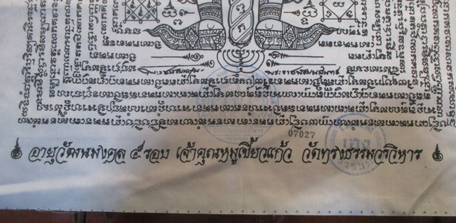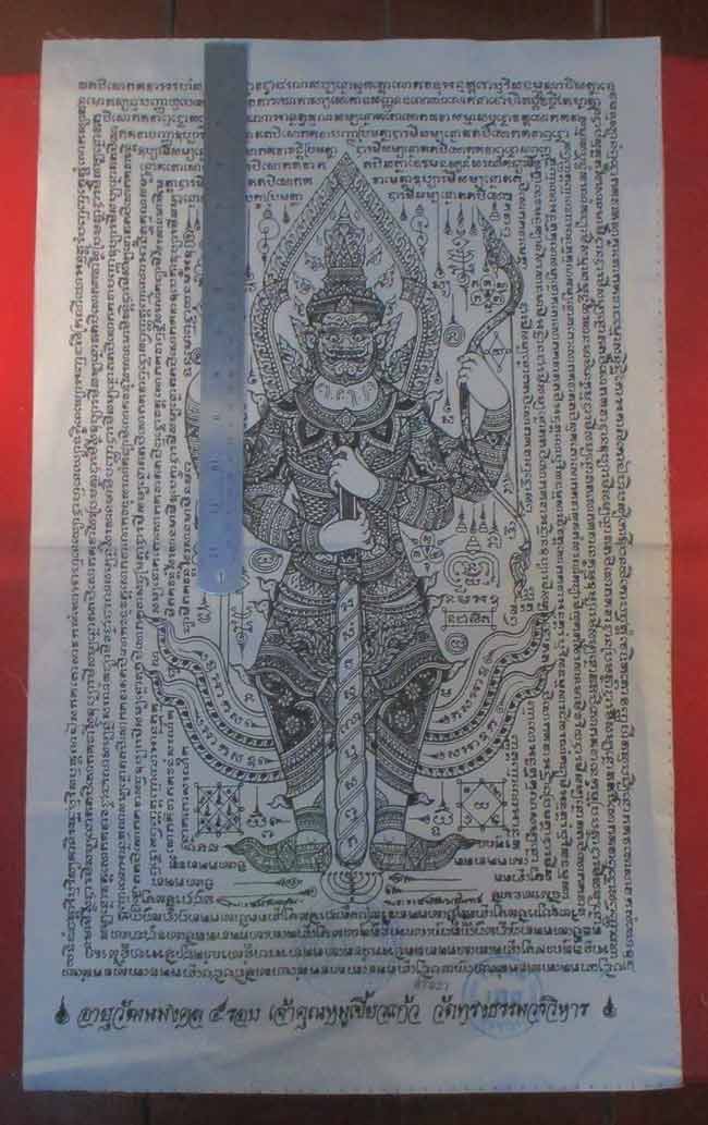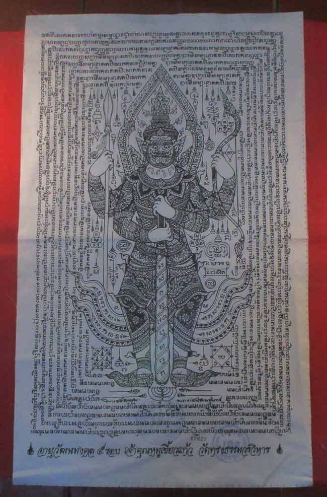 ผ้ายันต์ อายุวัฒนมงคล ๕ รอบ เจ้าคุณหมูเขี้ยวแก้ว วัดทรงธรรมวรวิหาร ลวดลายสวย ครับ (พระบ้าน ครับ)