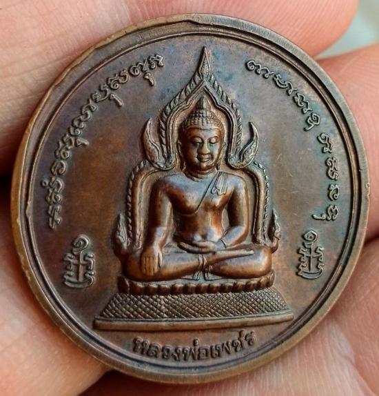 เหรียญบาตรน้ำมนต์เล็ก หลวงพ่อเพชรหลัง 3 คณาจารย์ ปี 2542 เนื้อทองแดง รุ่นพระพิจิตร -((หลวงปู่หมุน หลวงพ่อหวล วัดพุทไธฯ)) ร่วมปลุกเสก
