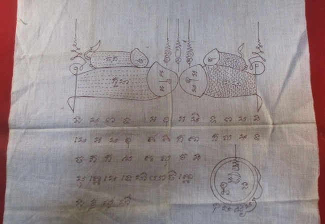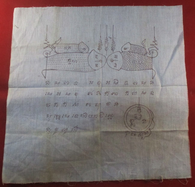 ผ้ายันต์ ไม่ทราบที่ จารยันต์ด้วยมือ ครับ