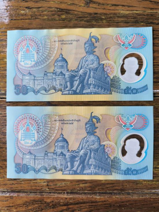ธนบัตรที่ระลึก 50 บาท ฉลองสิริราชสมบัติครบ 50 ปี UNC สวยๆ เลขลงท้าย 700 และ 900 ตามภาพ