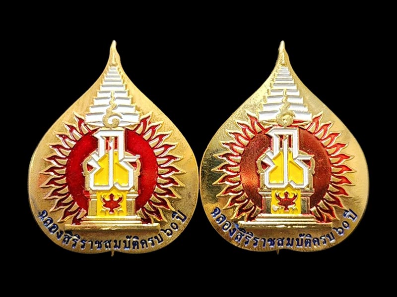 เข็มกลัด ภปร. ฉลองสิริราชสมบัติครบ 60 ปี พ.ศ. 2549 กะไหล่ทองลงยา จำนวน 2 ชิ้นตามรูป
