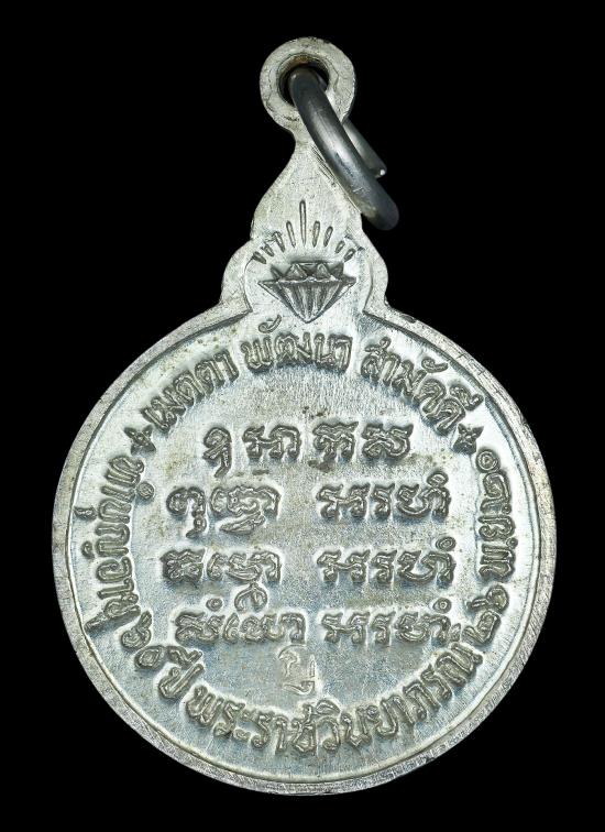 เหรียญกลม เมตตา พัฒนา สามัคคี หลวงปู่แหวน สุจิณโณ วัดเจดีย์หลวง จ.เชียงใหม่ ปี 2520 เนื้อเงิน ตอกโค๊ด
