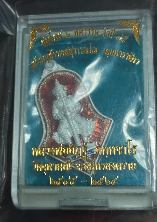 เหรียญท้าวเวสสุวรรณ หน้ายักษ์ อีกด้านหน้าเทพ รุ่นทรัพย์ทวีคูณ 2 ทศวรรษ จำปี 45 เนื้อเงินบริสุทธิ์ลงยาราชาวดี หน้าสีแดง -หลังสีเขียว จัดสร้างโดย หลวงพ่ออิฏฐ์ วัดจุฬามณี |
