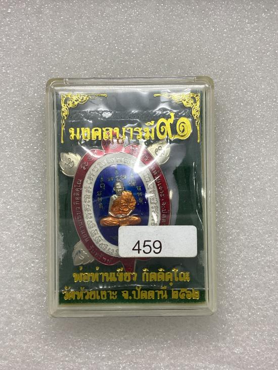 เหรียญพญาเต่าเรือน มงคลบารมี91 พ่อท่านเขียว วัดห้วยเงาะ อำเภอโคกโ. จ.ปัตตานี เนื้อเงินพดด้วงลงยาสีธงชาติ กล่องเดิม |
