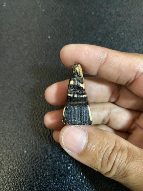 พระปิดตาเนื้อไม้แกะก้นอุดผง ลงรักปิดทอง เนื้อเก่าแห้งสภาพใช้ไม่รู้ที่ ขนาดสูงประมาณเกือบ 1 นิ้ว |