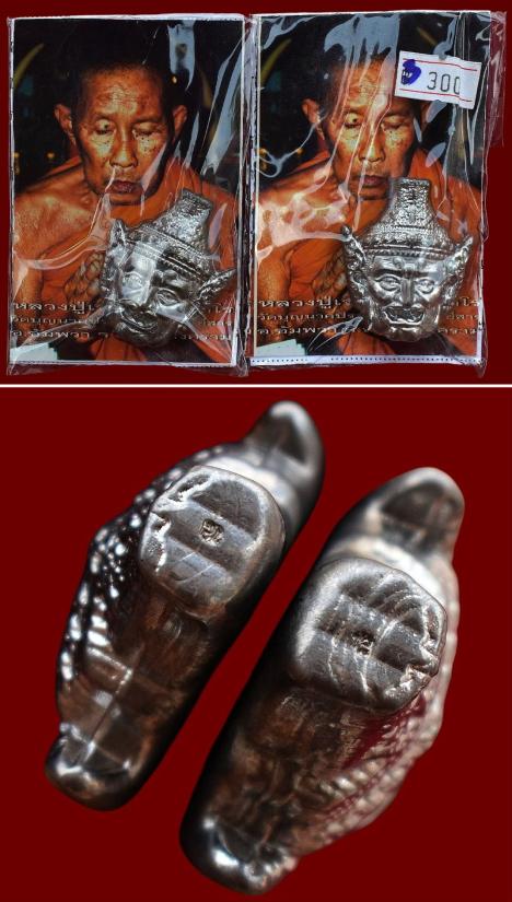 ชุด 2 องค์...เศียรครูปู่ฤๅษีนารอท เนื้อชินตะกั่วหล่อโบราณ ด้านหลังหลวงปู่จารยันต์ครู ปี 2555 หลวงปู่เฉลิม วัดบุญนาคประชาสรรค์ จ.สมุทรสงคราม พร้อมซองรูปสภาพเดิมจากวัด สภาพพระตามรูปทุกประการ ( ขนาดประมาณ 3.3 x 4.1 ซม. )