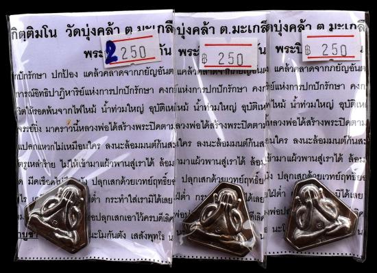 ชุด 3 องค์...พระปิดตามหากัน เนื้อชินตะกั่วหล่อโบราณ หลังหลวงพ่อจารยันต์ ปี 2555 หลวงพ่อมาโนช วัดบุ่งคล้า จ.นครราชสีมา พร้อมซองใบฝอยคาถาเดิมจากวัด |