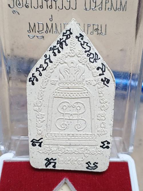 จัดสร้างด้วยเนื้อผงพุทธคุณ ด้านหลังเป็นยันต์นะกอดกัน เป็นยันต์สุดยอดทางด้านเมตตามหานิยม
