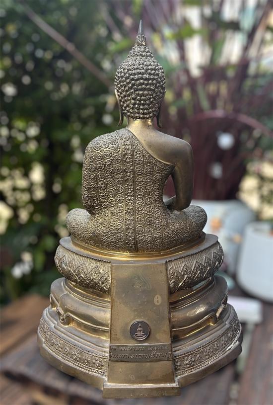 เนื้อโลหะขัดเงาผิวหิ้ง ฐาน13.5นิ้ว หน้าตัก 9 นิ้ว สูง 18นิ้ว