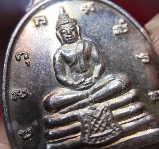 เหรียญหลวงพ่อโสธร ที่ระลึกสร้างพระอุโบสถ ด้านหน้าตัวย่อพุทธคุณ 9 ประการ หลัง ภ.ป.ร. ปี 33 "เนื้อเงิน" พิมพ์เล็ก