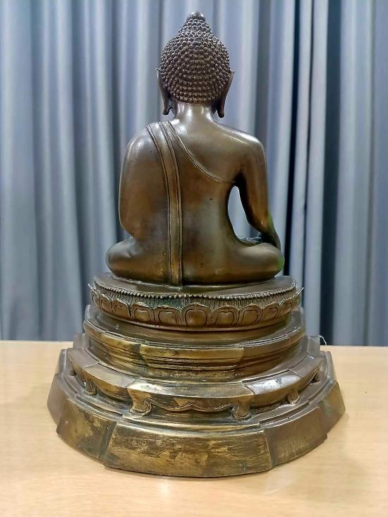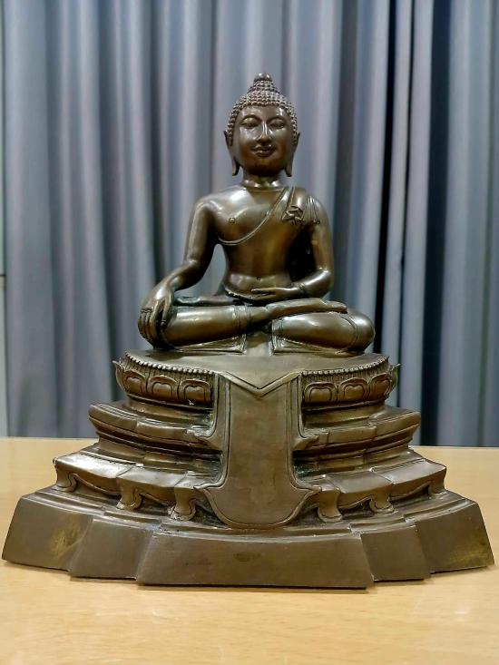 พระบูชา พระพุทธสิหิงค์ รุ่นพรหมบวร วัดบวรนิเวศวิหาร ปี 2553 หน้าตัก 5 นิ้ว หมายเลข 22 เนื้อทองเหลืองรมดำ ใต้ฐานฝังพระผง