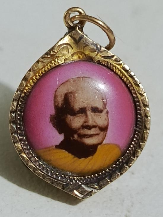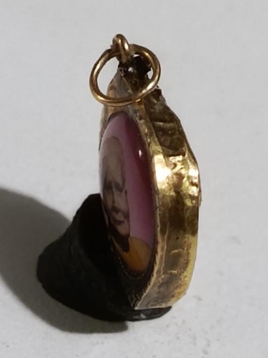 ล็อกเก็ต หลวงปู่แหวน วัดดอยแม่ปั๋ง ฉากชมพูยุคต้น [ พร้อมเลี่ยมทองคำแท้ ] ให้เด็กแขวนได้