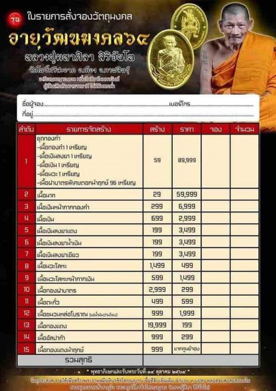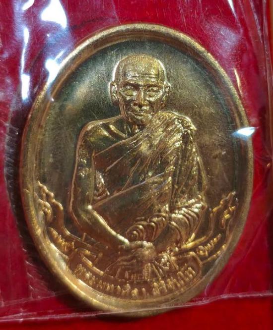พระเครื่องหลวงปู่ศิลา สิริจันโท เหรียญรุ่นอายุวัฒนมงคล 77 เนื้อทองฝาบาตร ชุดทองคำ