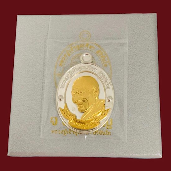 หลวงปู่มหาศิลา จงเจริญ เนื้อเงินหน้าทองคำ ผิวกระจก จมูก100 เลข277 กล่องเดิม สภาพสวยๆ ราคาจอง 9,500