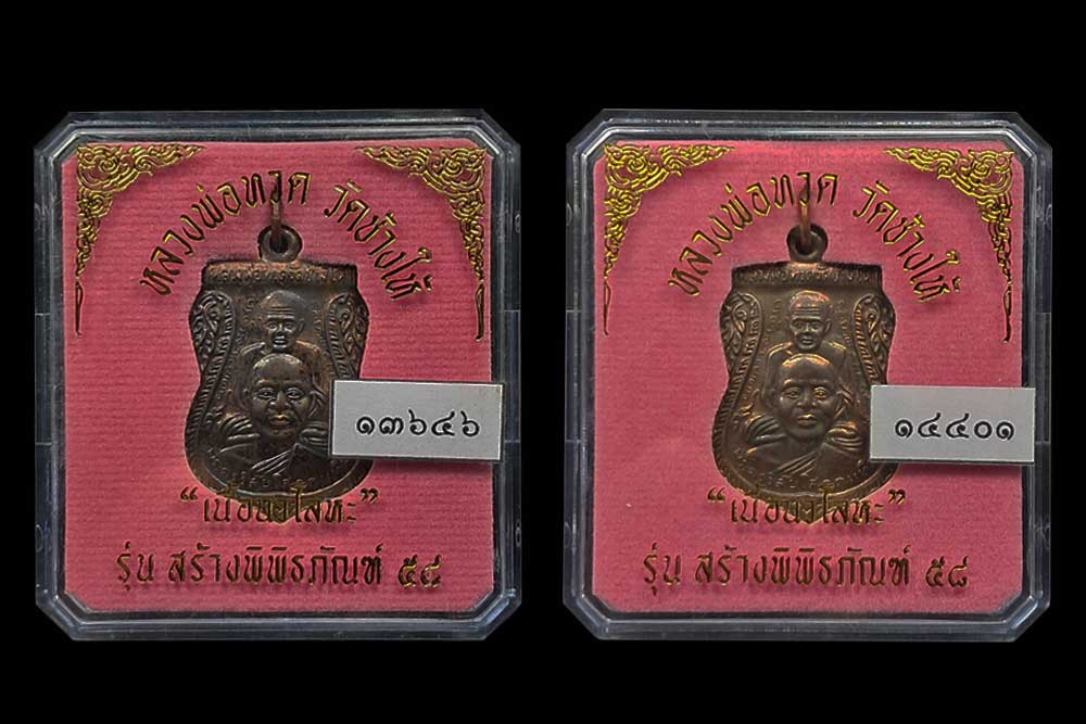 *****เคาะเดียว*****เหรีญเสมาเนื้อนวะ หลวงปู่ทวด วัดช้างให้ รุ่น สร้างพิพิทธภัณฑ์ 2558 หมายเลข 13646 และ 14401 พร้อมกล่องเดิมจากวัด(2 เหรียญ)