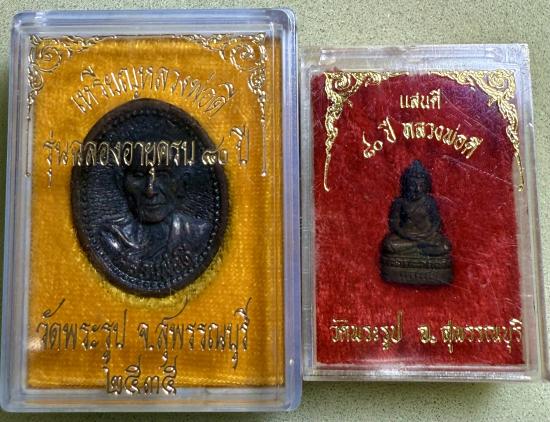 เหรียญหล่อ กับ พระชัย รุ่นฉลองอายุครบ 80 ปี หลวงพ่อดี วัดพระรูป ปี2535 สภาพสวยพร้อมกล่องเดิมค่ะ พระเหมาบ้านมาลงวัดใจค่ะ |