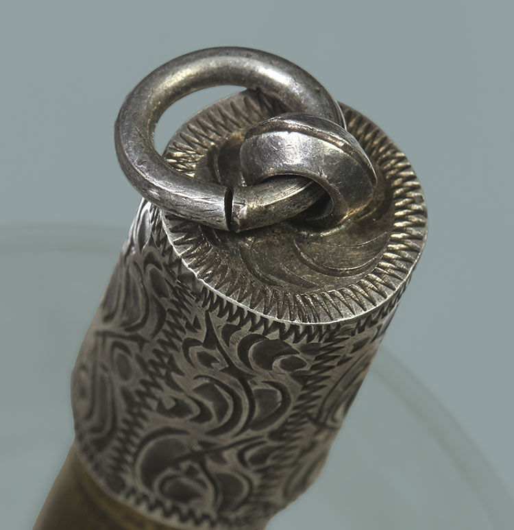 วัดใจ** เครื่องราง ตะกรุดลูกปืนเก่า เลี่ยมเงินแกะลาย สภาพสมบูรณ์..เดิมๆครับ
