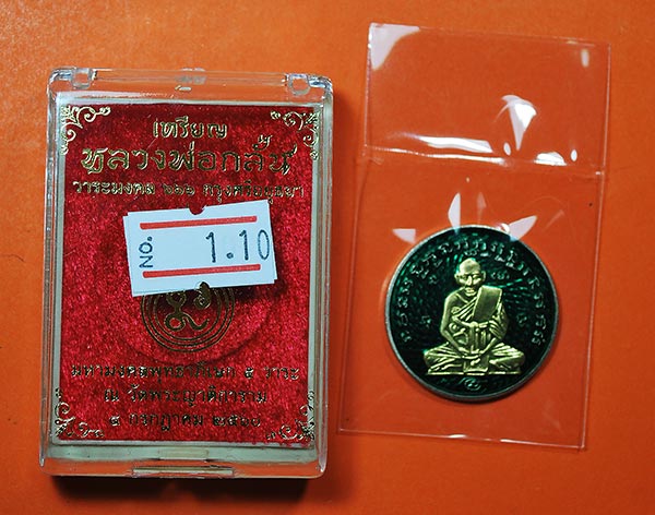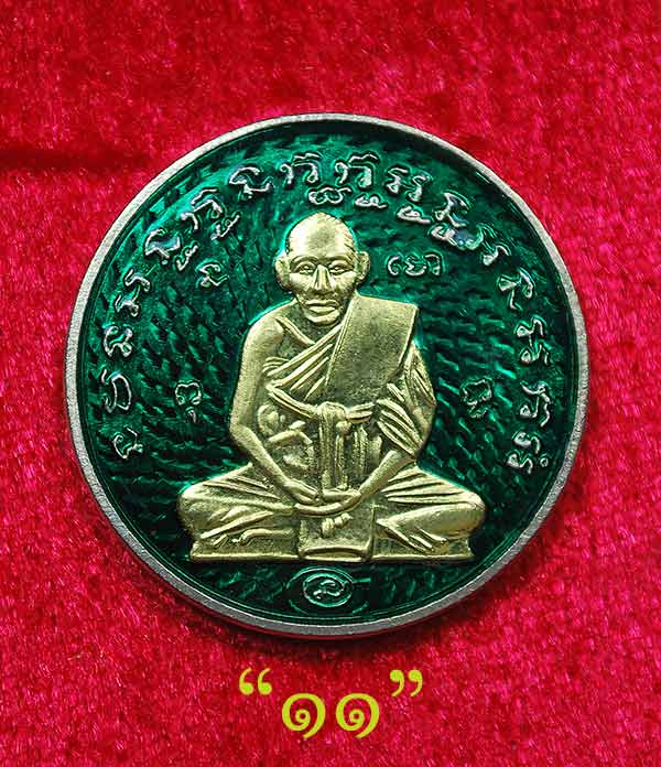 หรียญหลวงพ่อกลั่น วัดพระญาติฯ พิมพ์นิยมตราชั่งนะรี วาระใหญ่ 666 ปีกรุงศรีอยุธยา "เนื้ออัลปาก้าลงยาสีเขียวหน้ากากชนวนพระประธาน No.11
