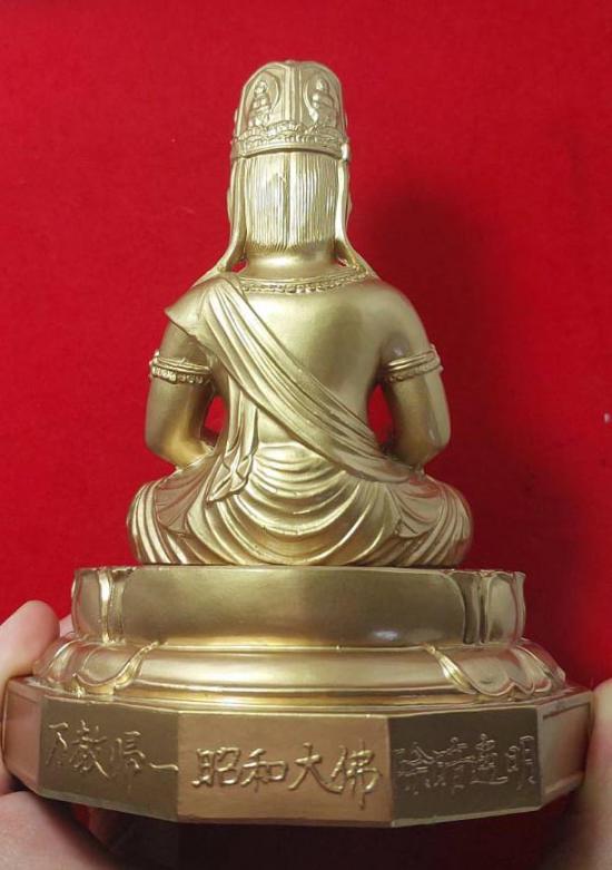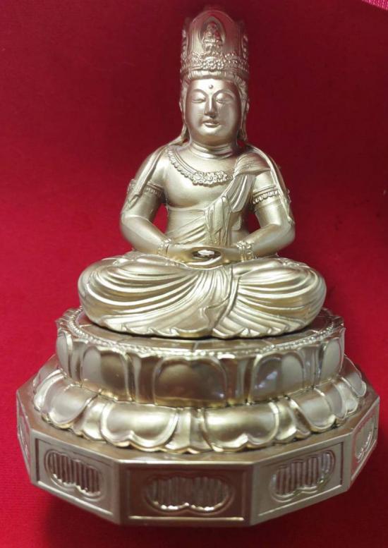 พระบูชา พระโพธิสัตว์ จากญี่ปุ่น เนื้อโลหะสีทองพ่นทรายฐาน 4.5 X สูง 5.5 นิ้ว