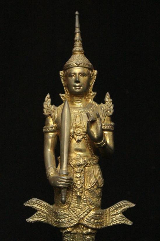 มือขวาถือพระขรรค์ มือซ้ายจีบตรงพระอุระตามแบบฉบับองค์ต้นแบบในพระบรมมหาราชวังครับผม
