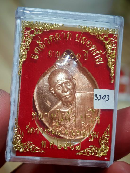 หลวงปู่แผ้ว เหรียญ แคล้วคลาด ปลอดภัย เนื้อทองแดง เลข 3303 สภาพสวย พร้อมกล่องครับ