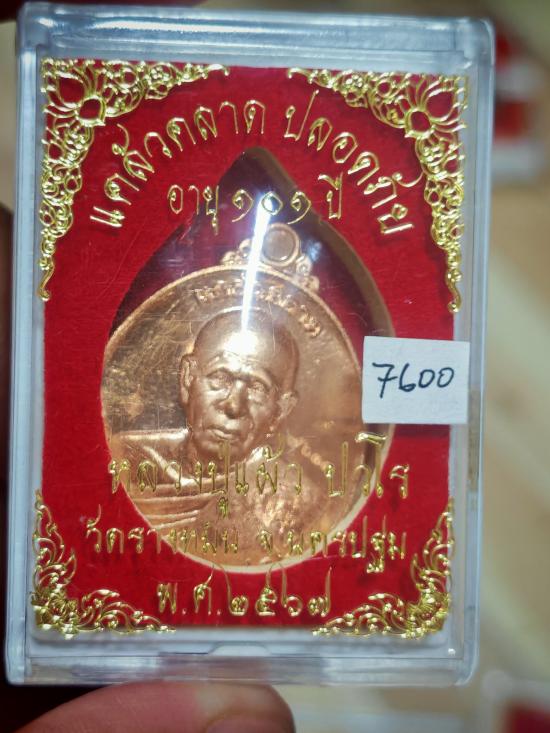 หลวงปู่แผ้ว เหรียญ แคล้วคลาด ปลอดภัย เนื้อทองแดง เลข 7600 สภาพสวย พร้อมกล่องครับ