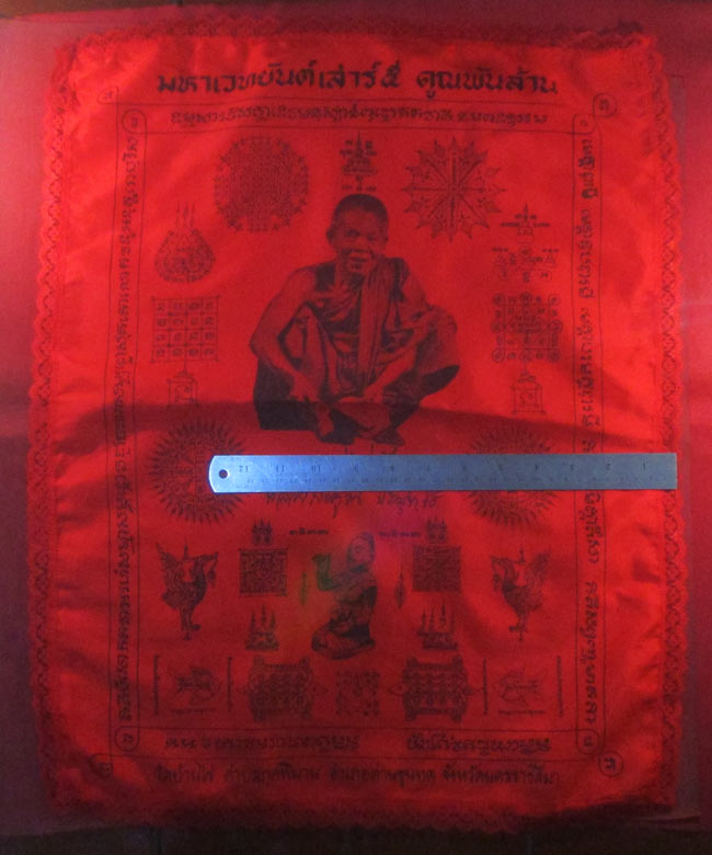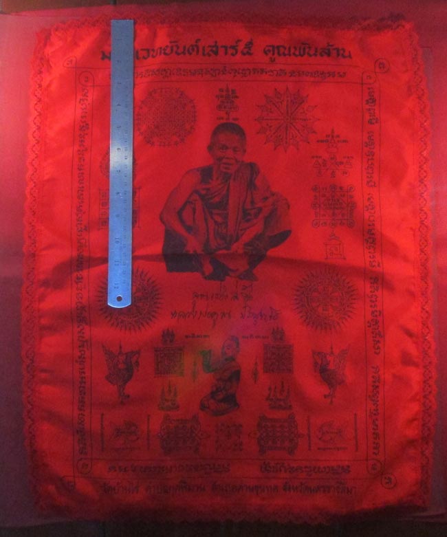 ผ้ายันต์ มหาเวทยันต์ เสาร์ ๕ คูณพันล้าน หลวงพ่อคูณ ปริสุทฺโท วัดบ้านไร่ อ.ด่านขุนทด จ.นครราชสีมา ครับ (พระบ้าน ครับ)