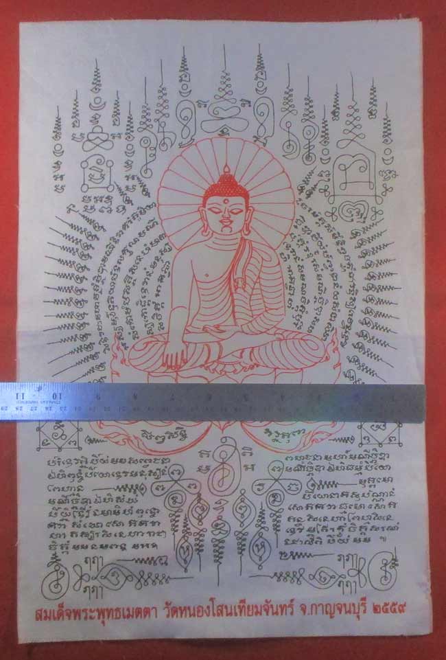 ผ้ายันต์ สมเด็จพระพุทธเมตตา วัดหนองโสนเทียนจันทร์ จ.กาญจนบุรี ครับ
