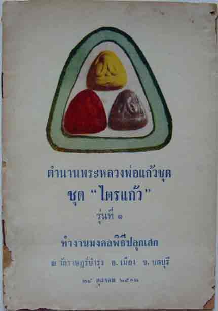 พระปิดตาที่สร้างจากผงของหลวงพ่อแก้ว และผงที่สำคัญของวัดต่างๆ ในจังหวัดชลบุรี โดยหลวงพ่อบัว วัดบางเป้ง เป็นผู้จัดสร้างก็ลองเช่าบูชาดูครับ พระปิดตาไตรแก้วนี้มีพิมพ์เดียวแต่มี 3 สี คือ แดง ดำ เหลือง ด้านหลังพระปิดตาประทับอักขระ "ธ" ซึ่งเป็นอักษรย่อของท่าน พระชุดนี้ได้ลงอยู่ในหนังสือ พระปิดตา ๑๙ คณาจารย์จังหวัดชลบุรี หน้า ๘๖ |