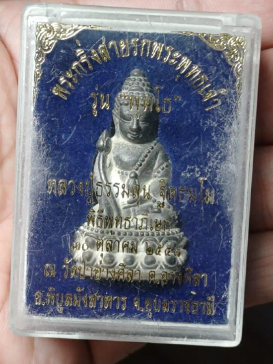 กริ่งสายรก หลวงปู่ธรรมลุน ฐิตฺธมฺโม สำนักสงฆ์ภูไห อ.บุณทริก จ.อุบลราชธานี ก้นเงิน พร้อมกล่อง |