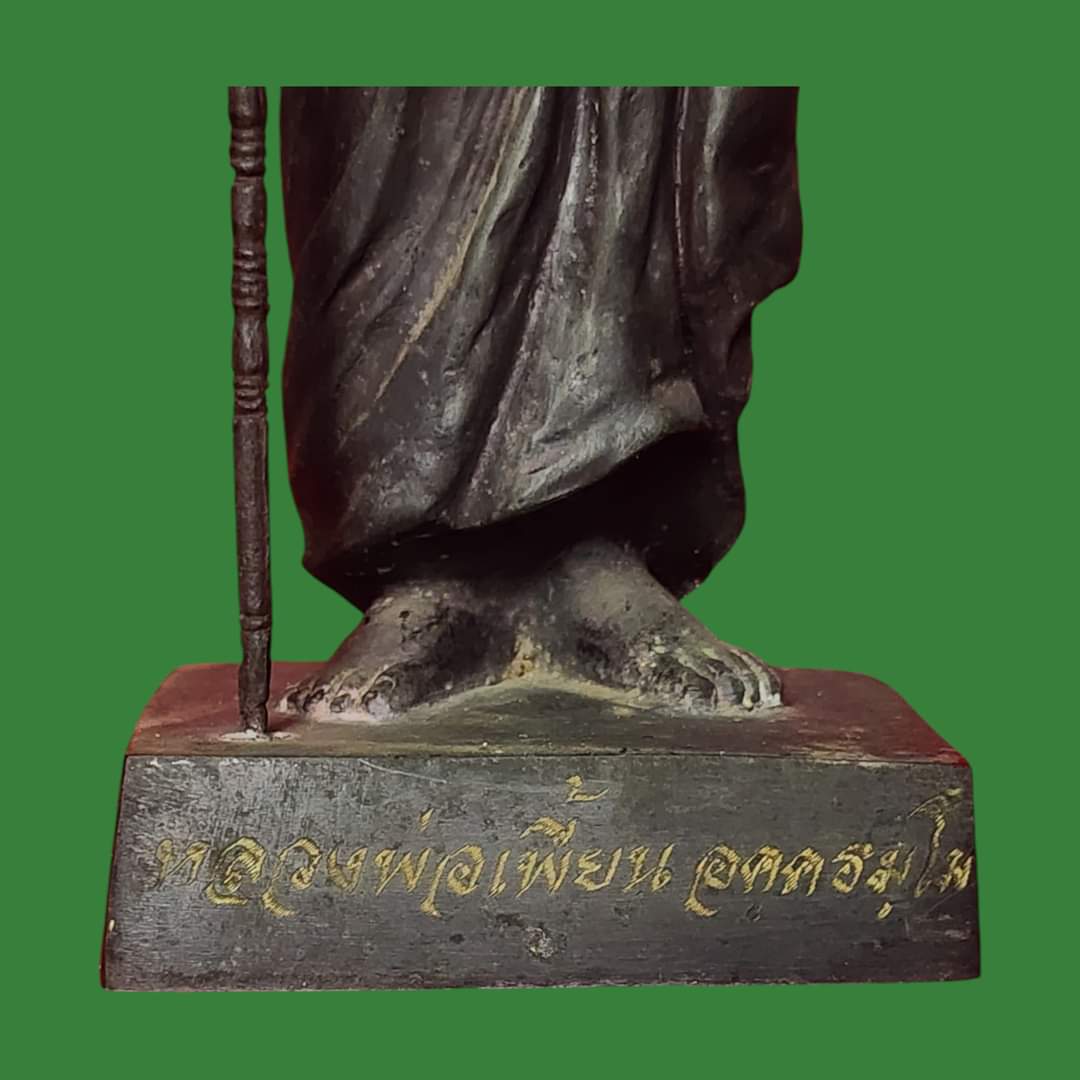 พระบูชายืนถือไม้เท้ารุ่นแรก หลวงพ่อเพี้ยน อคฺคธมฺโม วัดเกริ่ นกฐิน เททองฯ 17 มี.ค.2544 เนื้อโลหะรมดำมันปู ผิวหิ้ง !!