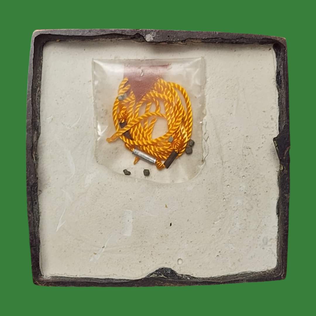 ใต้ฐานอุดปูน ฝังถุงบรรจุตะกรุด 3 กษัตริย์ เส้นเกศาและจีวร เพชรหน้าทั่ง !!