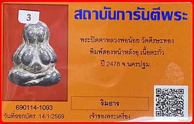พระปิตตาหลวงพ่อน้อย วัดศรีษะทอง พิมพ์สองหน้าหลังอุ เนื้อตะกั่ว ปี2478 มีบัตรรับรองจีพระ เคาะเดียว
