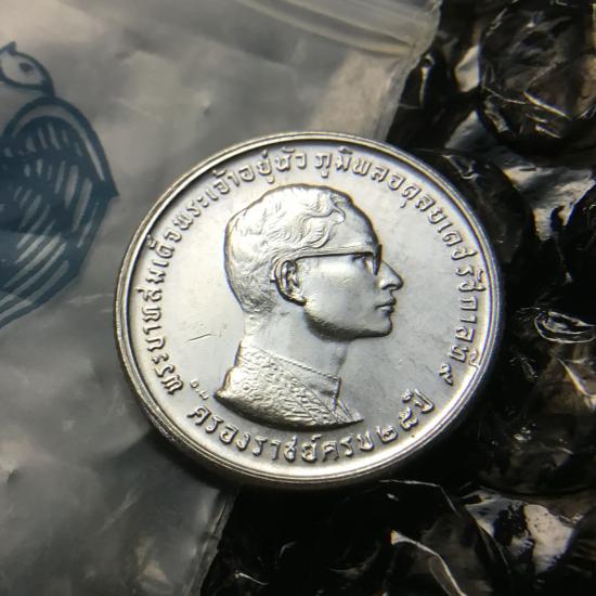 เหรียญเนื้อเงิน ที่ระลึกครองราชย์ 25 ปี รัชกาลที่ ๙ พร้อมซอง กรมธนารักษ์