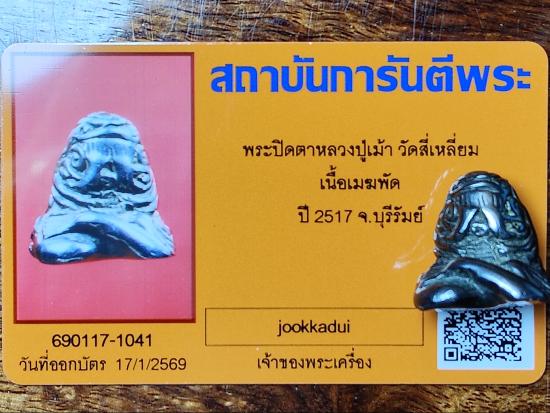 พระปิดตา หลวงปู่เม้า วัดสี่เหลี่ยม จังหวัดบุรีรัมย์ ปี2517 เนื้อเมฆพัตร พร้อมบัตรรับรองของเว็บ G Pra |