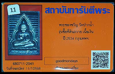 พระของขวัญ เนื้อเงิน รุ่นซื้อที่ดิน ปี2534 วัดปากน้ำ กรุงเทพ