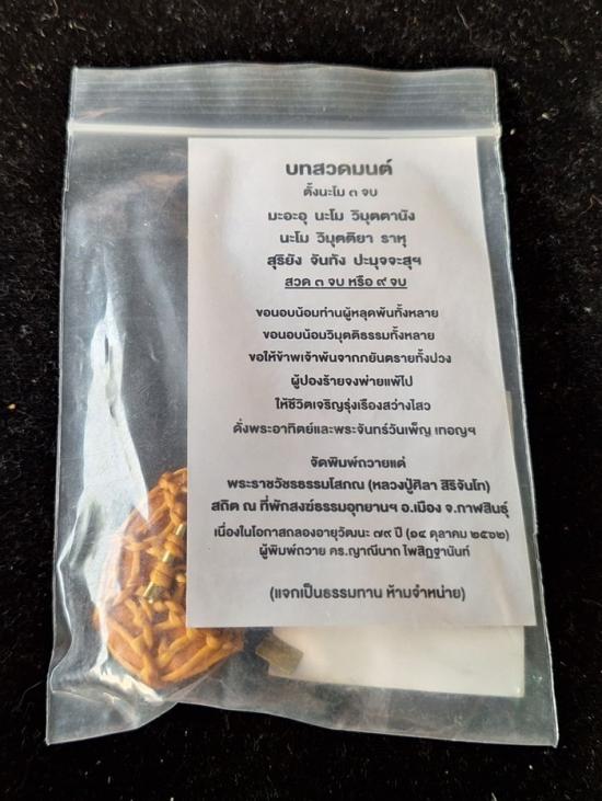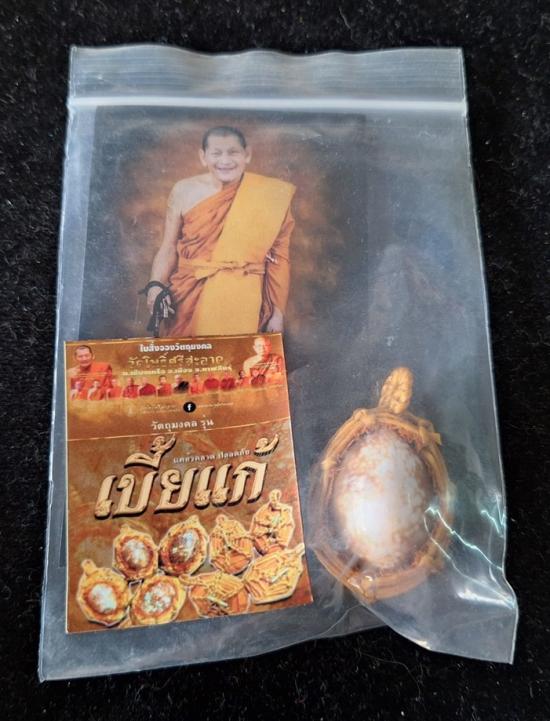 เบี้ยแก้ หุ้มจีวร ถักเชือก หลวงปู่ศิลา วัดโพธิ์ศรีสะอาด มีแผ่นเลขกำกับ ฝังตะกรุดทองเหลือง พร้อมใบคาถา ปี2567