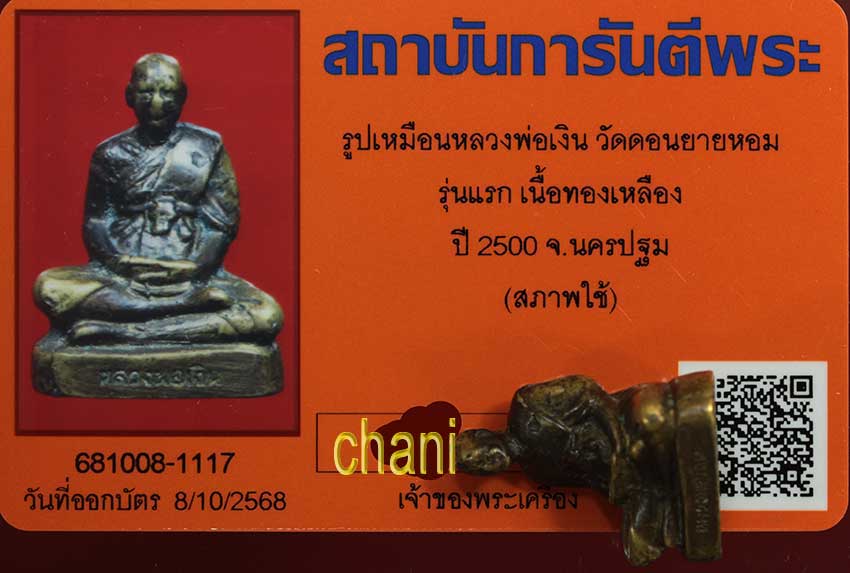 รูปเหมือน หลวงพ่อเงิน วัดดอนยายหอม รุ่นแรก เนื้อทองเหลือง ปี2500 จ.นครปฐม สภาพเก่าน่ารักน่าใช้ พร้อมบัตรรับรองพระแท้จากจีพระ อุ่นใจได้ค่ะ