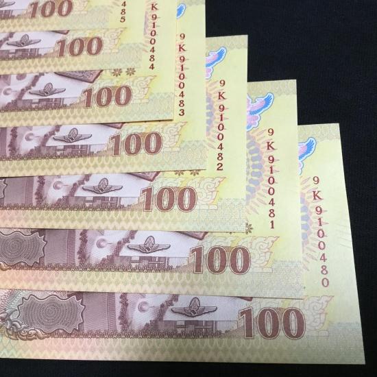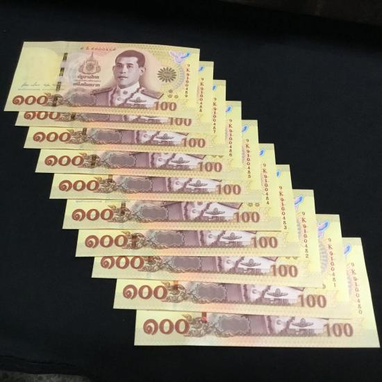 10 ฉบับแบงค์ 100 ที่ระลีก บรมราชาภิเษก รัชกาลที่ 10 เลขเรียง **หมวด 9K-9100480----9K-9100489** มี 1 ฉบับ หมวด9- 9 หน้า 9 หลัง**