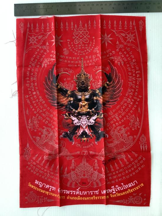 ผ้ายันต์ พญาครุฑ รุ่น เศรษฐีเงินไหลมา วัดพระศรีมหาธาตุวรมหาวิหาร จ.นครศรีธรรมราช สีแดง ขนาด A3 ขนาด 11.5 นิ้ว x 16.5 นิ้ว