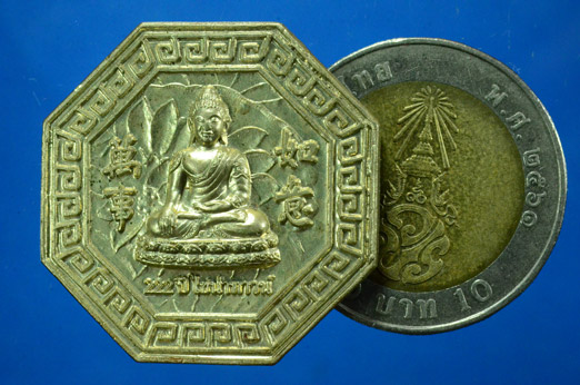 100 ส่งด่วน เหรียญแปดเหลี่ยม 222 ปี ไชนาทาวน์ สมเด็จพระเทพฯ เสด็จมาเป็นป ระธานพิธี สร้างปี 2547 เนื้ออัลปาก้า ด้านหน้าพระปางประทานพร ด้านหลังซุ้มประตูเฉลิมพระเกียรติ เยาวราช