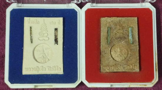 5.2 สีฟ้าหลังแผ่นปั๊มองค์พระปฐมเจดีย์ฝังตะกรุดเงิน 2 ดอก