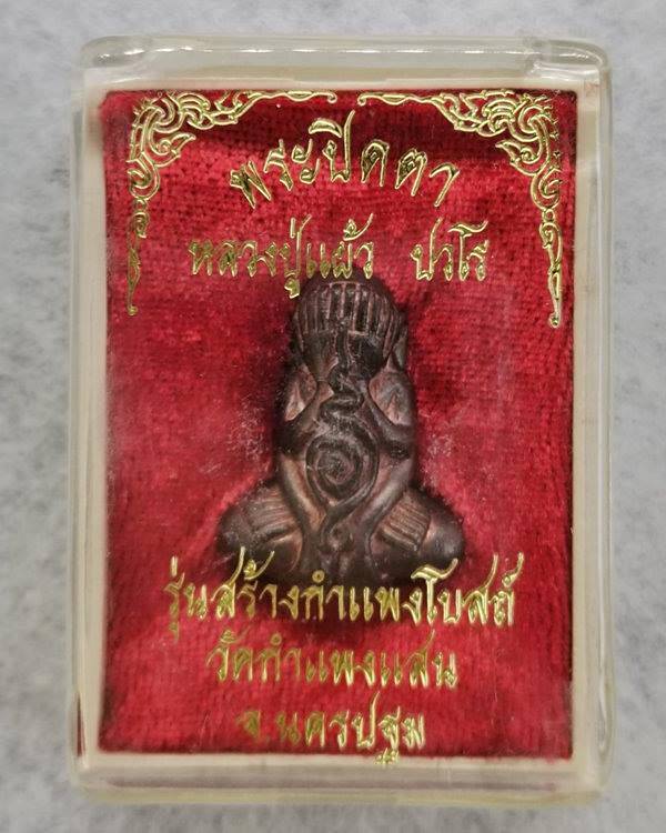 พระปิดตา ปี47 หลวงปู่แผ้ว ปวโร รุ่นสร้างกำแพงโบสถ์ วัดกำแพงแสน จ.นครปฐม มีกล่อง