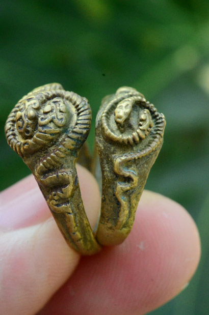 100 ส่งด่วน แหวนงูเกี้ยว หล่อโบราณ เก่าไม่ทราบที่ครับ 2 วง ครับ |