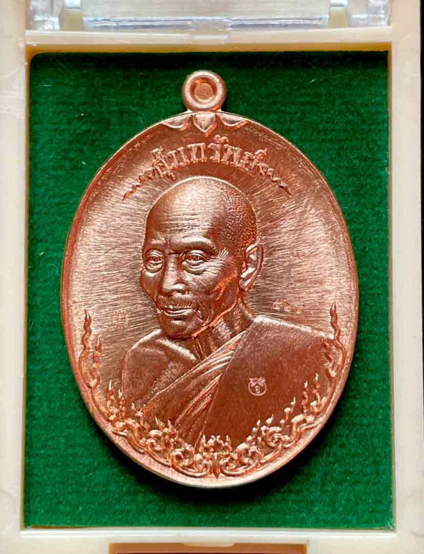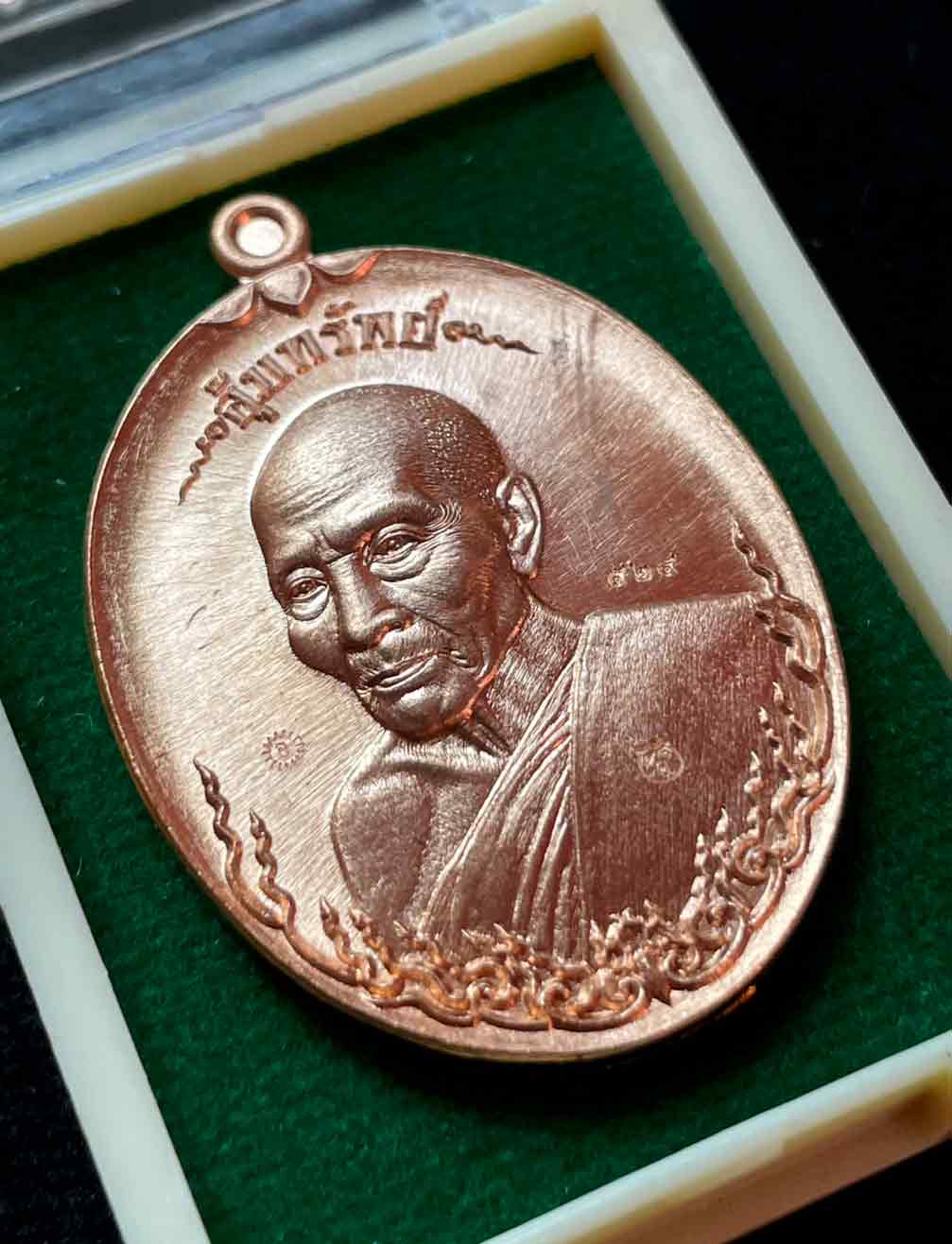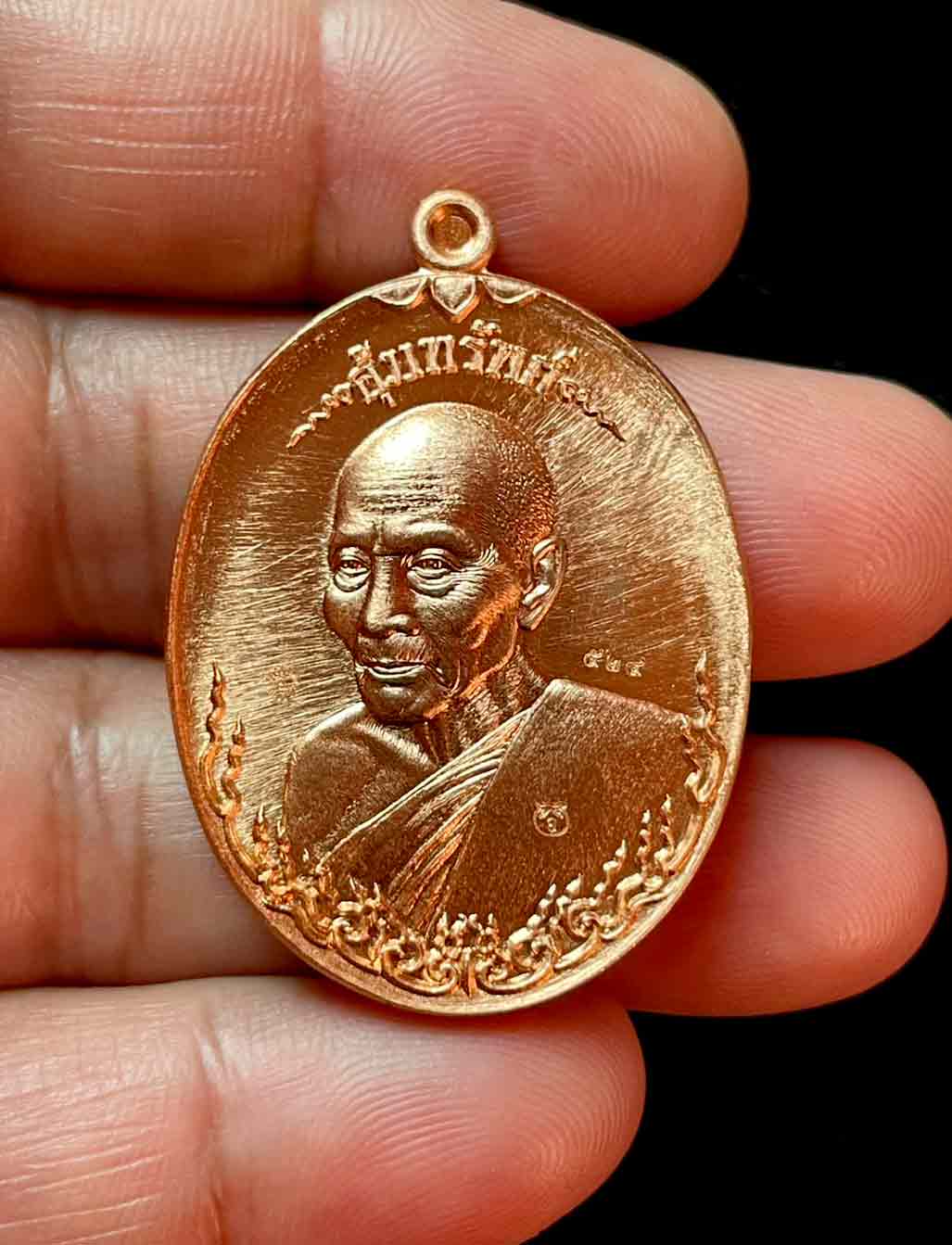 วัดใจ เหรียญ อุ้มทรัพย์ หลวงพ่อชอุ้ม วัดตะเคียนเลื่อน จ.นครสวรรค์ ปี 2564 เนื้อทองแดงผิวไฟ เลข 524 กล่องเดิม