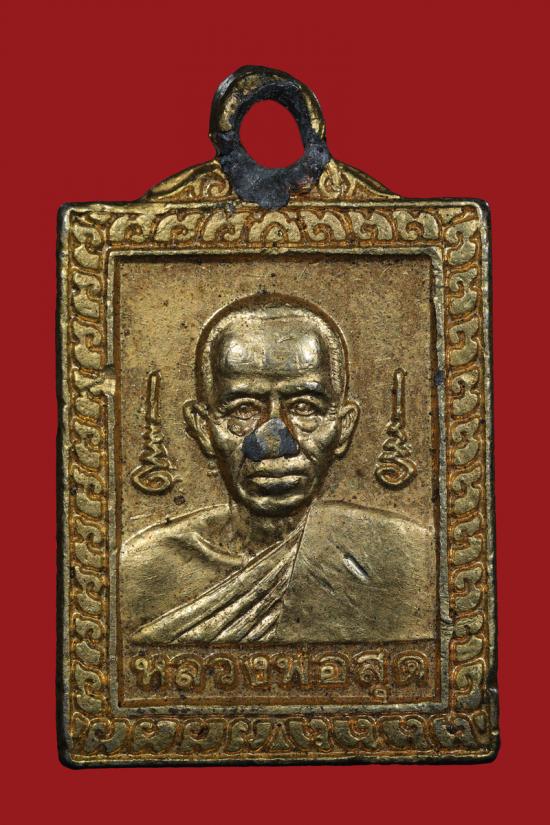 ((เคาะเดียว)) เหรียญแสตมป์เล็ก หลวงพ่อสุด วัดกาหลง กะไหล่ทอง ปี20