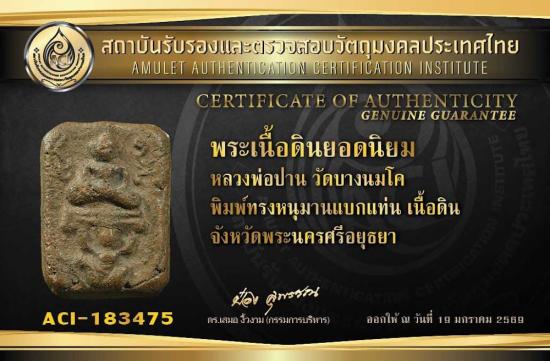 พระหลวงพ่อปาน พิมพ์หนุมานแบกแท่น พร้อมบัตร
