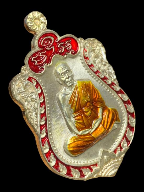 หลังยันต์จม เนื้อสัตตะโลหะ อาบเงิน ลงยาแดง no.934