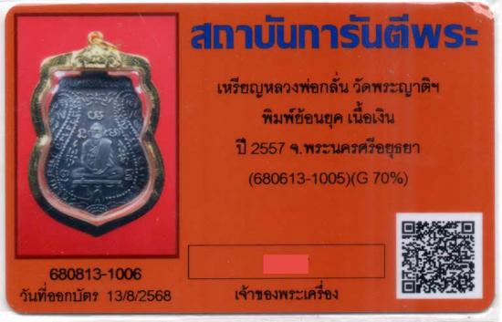 รายละเอียด วัดใจ_เหรียญเนื้อเงินหลวงพ่อกลั่น ปี2557 พร้อมบัตรรับรอง มีแต่เหรียญ
